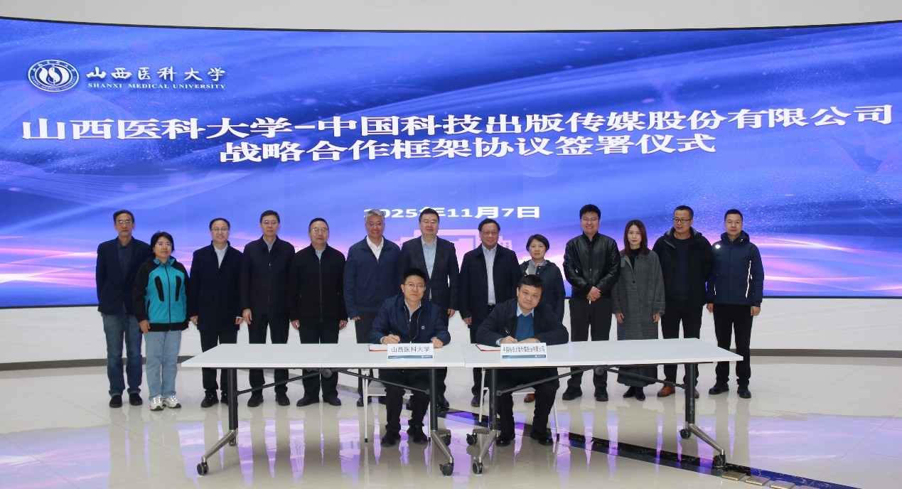 11月7日上午, 山西醫(yī)科大學—中國科技出版?zhèn)髅焦煞萦邢薰緫?zhàn)略合作框架協議簽署儀式在山西醫(yī)科大學圓滿舉行,雙方攜手開啟共筑學術高地、服務醫(yī)學創(chuàng)新的新篇章。